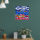 Beach Umbrellas Sailboats Fun Folk Art Poster