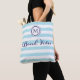 Beach Vibes Blue White Stripe Coastal Monogram Tote Bag