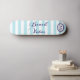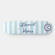 Skate in summer style with this breezy, beach-inspired skateboard. With light blue and white wide stripes, and "Beach Vibes" in elegant script typography along the deck, the preppy striped board is your passport to laid-back coastal cool. Personalise with an initial as a monogram which will appear within circles in a porthole style. The nautical custom deck brings seaside charm to every ride.