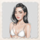 A stunning white-skinned girl with captivating beauty, wearing a white bikini, and sporting shoulder-length hair.