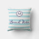 Beach Vibes Monogram Striped Light Blue White Cushion