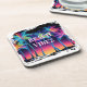 This plastic hard coaster set is shown with a Beach Vibes beach palm print.