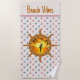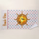 A Beige Designed Boating Wheel And Tropical Beach Towel Patterned In Blue Anchors