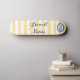 Bring out the sun as you skate with this breezy, beach-inspired skateboard. With light yellow and white wide stripes, and "Beach Vibes" in elegant script typography along the deck, the preppy striped board is your passport to laid-back coastal cool. Personalise with an initial as a monogram which will appear within circles in a porthole style. Whether you're at the park, in the city or on the promenade, this custom deck brings seaside charm to every ride.