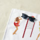 Great fun ! Volleyball on the beach. is the theme of this down-the-shore motif beach blanket.