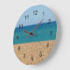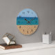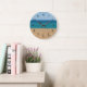Beautiful beach themed wall clock with blue, turquoise and tan colours, Great for any beach themed room.