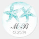 Tropical starfish couple blue beach wedding stickers seals with your monogram and wedding date, can be used on your favours or on the back side of the envelopes.