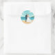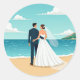 Includes 20 small stickers on one sheet. This charming sticker features a bride and groom standing on a sandy beach with the ocean and sky in the background, perfect for enhancing wedding or romantic-themed decor.