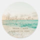Beautiful beach scene design wedding favour stickers printed with "Happily ever after" or another quote of your choice, names and wedding date.