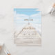 This beach-themed wedding invitation is perfect for a romantic beach wedding or destination wedding. This custom beach wedding invitation is fully customisable to match your special day. The design on the back can be removed or replaced.