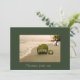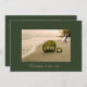 This romantic invitation shows not only a happy couple in the background but also a great beach scene with the words of Love on a green leaf.