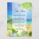 Display your beach wedding open bar menu with this bright, joyful design featuring a golden beach with turquoise sea and blue sky with bokeh lights, decorated by a clear glass of wine with grapes and refreshing glass of ice cold mojito with mint and lime over fresh green palm tree leaves. Perfect for beach weddings, destination weddings, tropical weddings, island weddings, summer weddings and other sea-related events. Please visit the collection to see the entire suite.