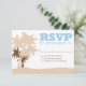 Beach Wedding Palm Trees RSVP Template Cards. Wedding on the beach RSVP / response cards. Light blue, tan and brown with palm tree silhouettes and template text for you to easily add your own wedding date and reply wording.