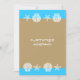 Wow your guests with these trendy and unique invitations which have see through scallop shells and starfish flowing horizontally across the top and bottom edge of the invitation. If you're having a beach wedding or theme party to do with tropical, hawaiian or exotic theme party vacation destinations, then this elegant & unique tan, blue & white invite is ideal for the occasion. It is fully customisable and the template fields have been created to allow you to change the wording, style / size & colour of the font, the colour of the background and to re-position and re-size the images. Team it with the matching envelope which when opened reveals the same graphic design on the inside. There is no better way to make an impact than to treat your guests to the whole range – invitation, envelope and matching postage stamp. For the full range of mix and match stationery for functions / events / gatherings and parties, visit our homepage by clicking on the "mensgifts" link, followed by the "Invitaions" category. The type of paper may be changed from basic to any of those you prefer and the size of the invitation changed from a 5”x7” to any one of the other sizes offered. PLEASE NOTE: We do custom orders too and would be more than happy to assist with any requirements you may have. ©Robin Wood - mensgifts. All rights reserved.