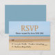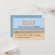 Beach Wedding RSVP Card, the front of the card features a photograph of a sandy beach beneath a blue sky while the back is a soft sea blue colour. Please personalise this card by editing the Respond-By Date in the online Personalisation template before ordering, so that guests know when you need the responses by. A lovely card to send out and receive back too! Matching wedding items featuring the same sandy beach photograph may be found in the collection “Sandy Beach Blue Sky Invitation Suite”.