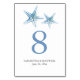 This beach wedding table number card features a watercolor starfish in shades of blue with the bride and groom's names and wedding date. Use the template fields to add your custom details. To see more wedding table decoration ideas like this visit www.zazzle.com/dotellabelle