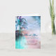 watercolor blue turquoise ombre beach wedding thank you card with string lights hanging on the palm trees.