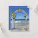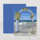 Summer Beach Wedding with white floribunda roses over the arch as you walk down on a sandy carpet with waves crashing in the background to inspired a palette to set the scene.