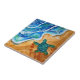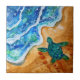 Beach with Green Turtle and Blue Ocean Waves Tile