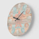 Beach Wood Nautical Stripes, Sea Glass, Turtle Large Clock