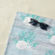 Beach Wood Sand Dollar Starfish Aqua Glitter Towel
