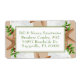 Sand dollar wreath, coastal Christmas return address labels. Brown sea stars and white sand dollars are combined with green holly to create a wreath over a sand tan background color. A white panel holds name and address in light green printed font. Choose any size label although the design placement will change a bit. Address can be up to four lines of text.