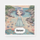 A pastel-hued chibi girl with a playful bob of purple hair and bright blue eyes is on the sandy shore, engrossed in the miniature world of rock pools. Sunlight filters through the clear water, illuminating the hidden treasures within. The tide has receded, leaving behind an array of fascinating creatures, each one a wonder to behold. Did you know that some species of sea anemones can live for over a century?