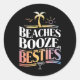 Beaches Booze & Besties Coconut Tree Summer Classic Round Sticker