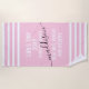 Personalised Beach Towel for Your Girls Weekend Friends Trip, Beach Vacation, or Cruise with editable text and wording for your date, destination or location, name, and fun quote like "beaches, booze, and besties" in pink, white, and black makes a fun keepsake for your travel squad or bridesmaids.