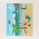 Get ready for endless fun in the sun with this exciting jigsaw puzzle! Piece together the adorable cartoon beach scene featuring kids sailing, ducks playing, and a mom basking in the sun with her laptop. Let your imagination soar as you solve this puzzle, and once completed, it can be proudly displayed on your wall as a beautiful piece of art. It's the perfect gift for kids and beach enthusiasts alike!