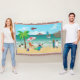 Indulge in a coastal escape with our Beachside Fun Throw Blanket. This delightful throw blanket features a captivating cartoon illustration of a beach scene, capturing the essence of a perfect beach day. With a boat, beach chairs, and a beach umbrella, this blanket invites you to relax and unwind. Let the cheerful atmosphere of two kids sailing towards the shore, accompanied by playful ducks, a flying pilot, and a cruising ship, bring a touch of joy and tranquillity to your cosy moments.
