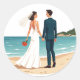 Includes 20 small stickers on one sheet. Celebrate your love with this beautiful illustration of a bride and groom walking hand in hand on a serene beach. Perfect for couples seeking elegant and romantic wedding-themed stickers.