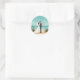 Includes 20 small stickers on one sheet. This charming sticker features a newlywed couple standing on a sandy beach with a beautiful ocean backdrop, perfect for wedding celebrations and romantic gestures.