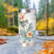 A Beachy Tropical Hibiscus Floral Stainless Steel Insulated Tumbler Drinking Glass