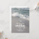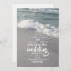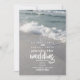 A wedding invitation featuring a photo of ocean waves and a sandy beach. Personalise the text on front.