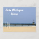 The beacon light on Lake Michigan shores of Chicago with Lake Michigan shores text
