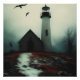 Enhance your space with a breathtaking poster featuring a serene lighthouse on a foggy day. This glossy-finish print beautifully captures the atmospheric scene, with a white tower lighthouse and a black lantern room standing resilient against the misty surroundings. The subdued palette of greys, whites, and blacks evokes a tranquil, coastal ambiance, while details like seagulls in flight and rocky terrain add depth and character. Perfect for bedrooms, living rooms, or home offices, this high-quality poster combines vivid colours and exceptional image clarity. Add a touch of nautical elegance to your decor with this timeless artwork.