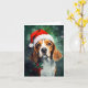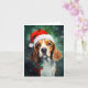 Colourful and joyful Christmas design with a Beagle wearing a Santa hat.