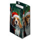 Colourful and joyful Christmas design with a Beagle wearing a Santa hat.