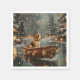 Set sail into the magic of the holiday season with this beautifully detailed illustration, showcasing a proud dog sitting in a festively decorated boat, gliding across a serene Christmas lake. The twinkling lights from nearby pine trees reflect off the water, casting a warm, festive glow that enhances the cosy ambiance. Ornaments dangle from the boat's sides, while glowing lanterns light the way, creating a scene that captures the true essence of Christmas warmth and joy. This nostalgic artwork brings a touch of holiday magic to any space, perfect for those who cherish the spirit of the season.
