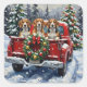 Bring happy, scent-hound charm to your holiday season with this adorable Beagle Christmas design! This festive scene features three cheerful and friendly Beagles sitting attentively in the back of a classic red pickup truck, nestled in a picturesque snowy winter forest. The vintage truck is adorned with a vibrant Christmas wreath, twinkling with red and gold ornaments and warm, glowing lights. Soft snowflakes gently fall, enhancing the winter wonderland effect. A decorated Christmas tree in the background completes this heartwarming picture, making it an ideal Christmas gift for any Beagle owner, dog lover, or admirer of festive and beloved dog art. This design perfectly captures the joyful spirit of the holidays.