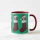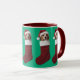 A cute Christmas mug featuring a Beagle wearing a Santa hat sticking out of a Christmas stocking.