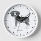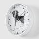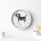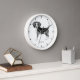 Destei's original black and white colour illustration of a cute Beagle breed dog drawn in digital ink wash style. The clock face is made of simple black lines. There is also a personalizable text area that now reads: "Beagle".