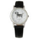 Destei's original black and white colour illustration of a cute Beagle breed dog drawn in digital ink wash style. There is also a personalizable text area for a name. The clock face is made of simple black lines.