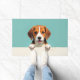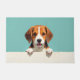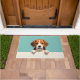 The soft sky teal background adds a fresh and welcoming feel, perfect for brightening any entryway. Designed with extra space at the top and bottom, it allows easy personalization with names, welcome messages, or custom text—making it ideal for unique dog-themed doormats and thoughtful gifts.