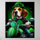 Beagle Dog driving bike St. Patrick's Day Poster