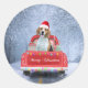 Beagle Dog in Snow sitting in Christmas Truck Classic Round Sticker