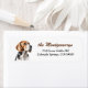 The left side of these return address labels feature an image of a beautiful Beagle Dog. Your custom text is in brown and black at the right. Everything is placed on a white background.
