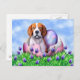 Celebrate Easter with this Beagle hatching from a coloured egg with coordinating tulips growing all around.