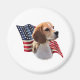 USA! America! Shout your pride with this awesome flag Patriotic background with this AKC dog breed Beagle in the forefront. Show your pride with this design on a t-shirt, mug, keychain, tote, magnet, button or greeting cards.
